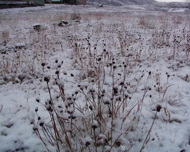 今天,阴间雨,山上可见降雪。地质组原计划今天上山钻取湖芯,但因风雨交加,无法在湖面上工作,只好在家休整一天。