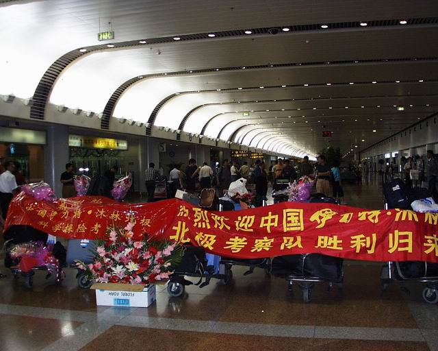 "9.11"后遗症害苦了他。 武素功告诉我,他所乘的美国某航班飞机晚点近四个小时到达奥斯陆,原因是起飞晚了4个小时,是"9.11"事件害苦了我。他说,他提前一个多小时到达美国某机场,长长的队伍,复杂而繁锁的安全检查,令他排了将近5个小时的队等候安检。他说,每一个人要花20多分钟的时间:询问、盘查、搜身、开箱逐一检查,甚至连足底也要用"扫描器"扫描。到了挪威奥斯陆,晚点4个多小时,我着急,队里派来接我的队友也着急。不过,我在二楼着急,他们在一楼着急,一直到20时左右我们才着急到一起了。我问他"什么叫着急到一起了",他说,20点左右,我看到两位穿着绣有中国国旗考察服的中国人在排Check in",我高兴极了,一把拉着一位的手问:"你们的队长是高登义吗?""您是武老师?"队友们闻声围了过来,我好像重新找到了"组织"一样,一颗悬起来的心落下来了。