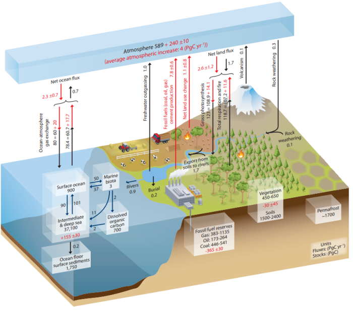 图1:全球碳循环示意图(来源:IPCC AR5)