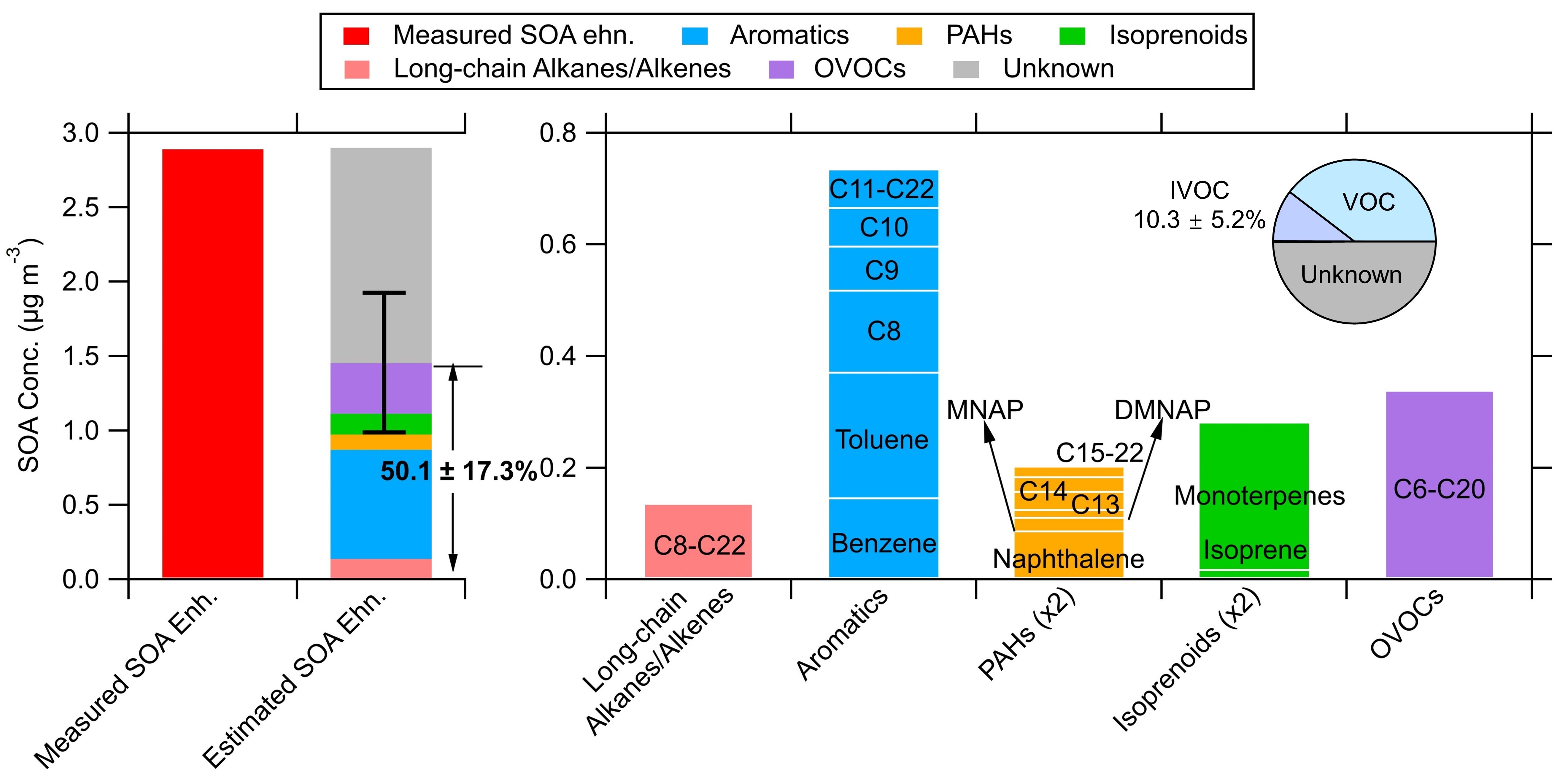 图3. 各类VOCs对SOA生成的贡献。