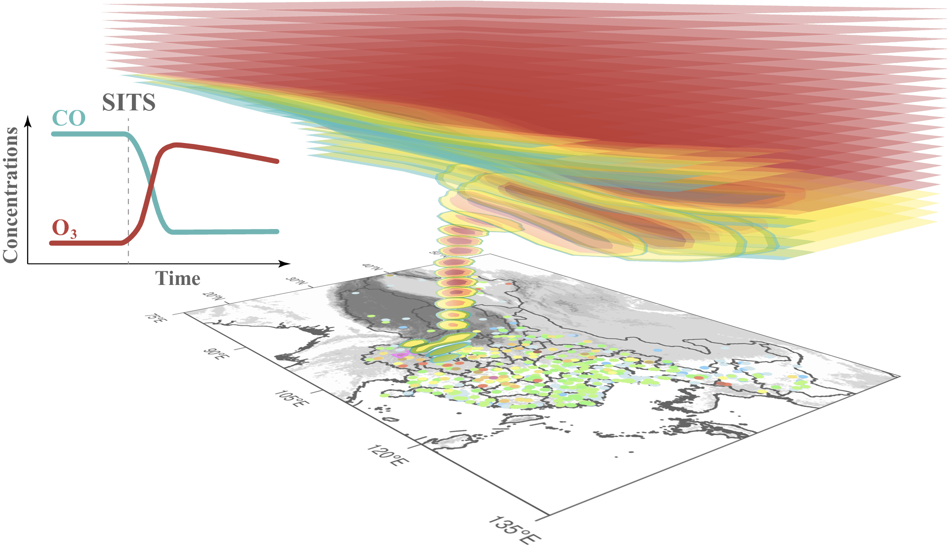 近期中国科学院大气物理所郄秀书团队同福建师范大学陈志雄副教授(2020年大气所博士毕业)和柳竞先教授针对这些问题展开了系统研究,阐述了典型强天气过程中平流层空气团下沉到地面(简称SITS)的传输路径和对大气成分的影响,并基于地面观测资料构建了SITS识别算法,首次量化了我国近地面O3污染中来自平流层O3天然源的贡献。近年来,我国O3浓度呈现增加趋势,这些研究将为O3污染问题中气象因素的贡献(如平流层入侵)以及沙尘暴过程中空气质量变化提供新的视角。