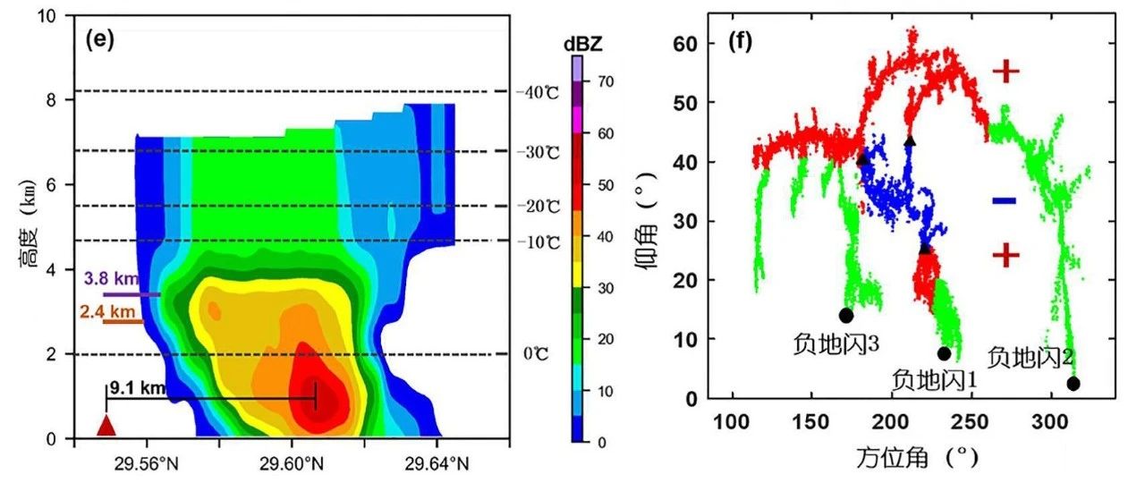 “过去我们只能通过测量电场变化推断雷雨云内电荷结构和闪电的宏观特征,现在通过自主研制的闪电甚高频干涉仪,我们能够以微秒甚至纳秒的时间分辨率精准分辨闪电过程和放电通道,从而研究闪电发展传输特征和对应的雷暴电荷结构演变,为提升雷电过程和机理认识提供了重要手段。”郄秀书研究员表示。结合天气雷达回波和探空等数据,团队发现云内的上部正电荷区比下部负电荷区弱的不平衡电偶极子,以及雷雨云单体尺度较小是引发这两次晴天霹雳的主要原因。