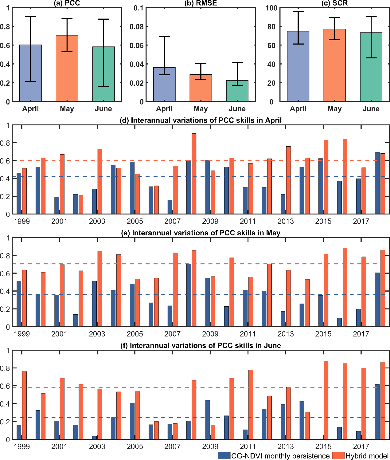 图 2 不同预测方法在中西南亚地区 NDVI 次季节预测中的对比结果。详见Zhu et al. (2025)的图4。