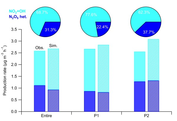 图1. 以氯化物作为硝酸盐气-粒分配过程的参考定量白天和夜间硝酸盐生成量