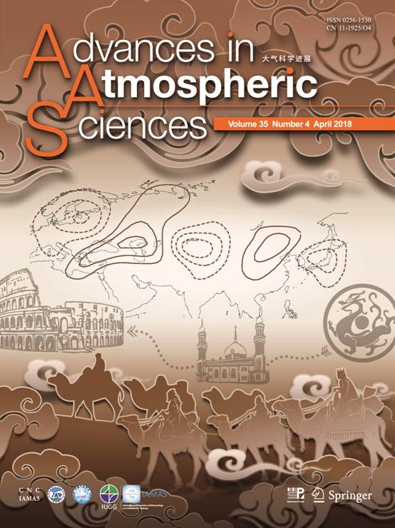 文章被选为《大气科学进》2018年第四期封面文章。图片中的等值线表示气象上的丝绸之路遥相关,该遥相关型是古丝绸之路上空大气环流的一种主导模态。此外,该图片也给出了古丝绸之路的景象及相关的代表性建筑。
