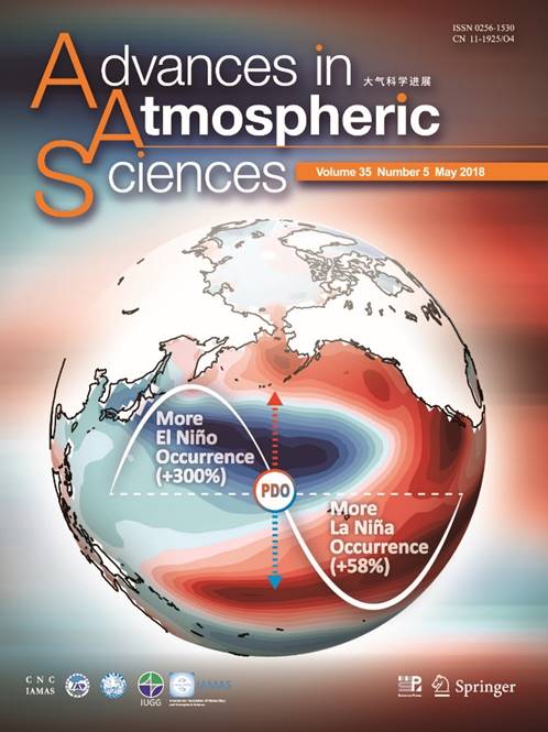 该工作被选为《大气科学进展》第五期封面文章。封面上的示意图突出描述了观测的北太平洋年代际震荡(PDO)的空间模态和与之密切相关的厄尔尼诺/拉尼娜的爆发频次,这一现象同时也被大多数CMIP5模式所证实。