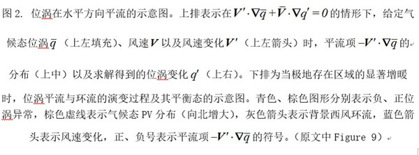 近期,我所LASG的谢永坤博士、吴国雄院士和刘屹岷研究员等,从位涡动力学理论出发,利用准地转位涡反演等方法,揭示了冬季北极增暖影响欧亚大陆变冷的动力机制。具体总结如下:首先,巴伦支海及周边海域相对于北极其它区域的显著增暖呈现低层强高层弱的垂直结构。这种垂直结构造成局地的负位涡异常,进而导致该区域的显著反气旋环流异常;其次,由于中高纬区域广泛存在的强经向位涡梯度,极地异常反气旋环流的东侧会向中高纬平流极地的大值位涡。同时,气候态背景的西风环流进一步将异常环流带来的大值位涡向下游平流;再次,从极地平流到中高纬的大值位涡会进一步造成中高纬的环流异常。经过不断反馈,当环流异常与位涡异常达到平衡时,在极地负位涡异常东南方向的欧亚大陆区域,产生了正的位涡异常及气旋式环流异常(图2)。该研究揭示的动力机制表明,北极增暖的空间型和垂直结构,以及气候态的经向位涡梯度等要素是北极增暖影响中高纬的动力过程中的关键因素。