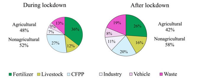 图3 疫情期间和疫情后期北京氨气的来源变化