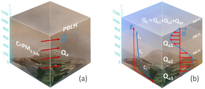 图1.传统单箱模型(a)与基于A值法改进的动态多箱模型(b)的概念模型;大气边界层关键气象要素监测技术。