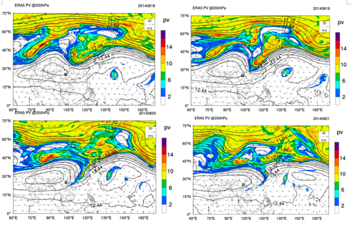 为了观测和探究夏季亚洲季风区大气成分结构特征以及影响大气时空变化的机理,中国科学院大气物理研究所中层大气和全球环境探测重点实验室(LAGEO)“大气成分探空团队”从2009年夏季就在昆明和拉萨开展了连续多年的臭氧、水汽、气溶胶探空观测实验。该研究即利用探空气球实验所获得高分辨率的温度、臭氧、水汽廓线,分别基于热力学和示踪物相关关系对夏季亚洲季风区对流层顶层结构和对流层顶层气团的混合特征进行了研究(图1),并探究了影响TTL气团混合的动力学机理(图2)。