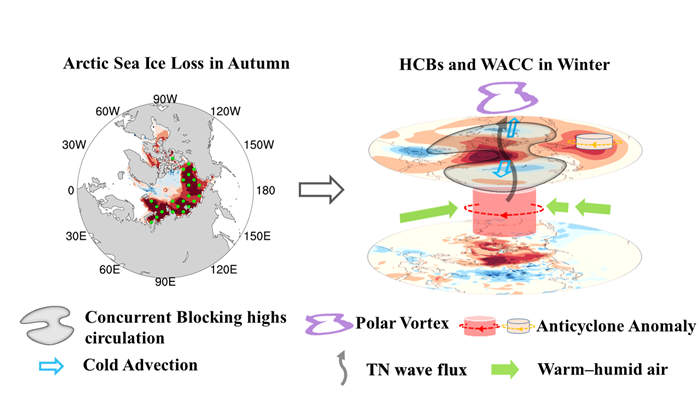 图2. 增强的高纬阻塞协同影响WACC模态的概念模型图