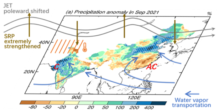 2021年9月,在印度西北部和我国华北地区同时出现极端强降水,两地降水量均打破了有观测以来的历史记录,造成了严重的洪涝灾害和人员伤亡。通常情况下,印度西北部雨季和华北雨季发生在7、8月,两地雨季在9月基本结束,而在欧亚陆地气温偏暖的背景下,2021年9月亚洲降水异常和大气环流异常都具有类似于雨季(7、8月)的特征。