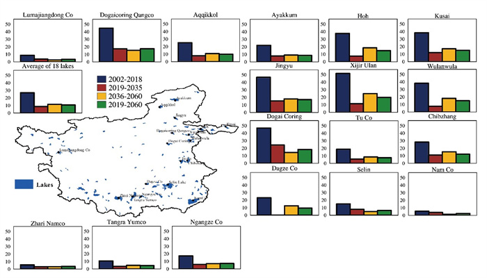 图2青藏高原内流区18个湖泊的水储量估算及未来预估