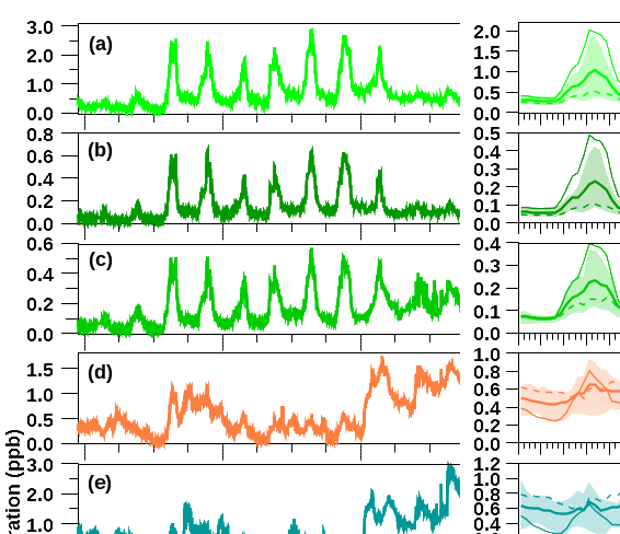 挥发性有机物(VOCs)是臭氧和二次有机气溶胶的重要前体物。尽管我国学者已经对城市、农村和森林站点的VOCs开展了广泛的研究,但是高山区域背景站点的生物排放和人为排放VOCs的报道仍有限。202211月,大气物理研究所张屹博士和徐惟琦副研究员等在最新建成的中国科学院大气边界层顶生态环境上黄观测站(海拔1128米),利用Vocus质子转移反应飞行时间质谱等仪器对气态有机分子化合物进行了实时在线观测和分析。
