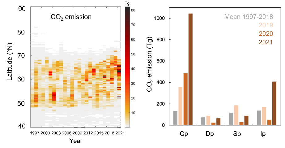 图1 北极多年冻土区野火燃烧碳排放量的加速上升