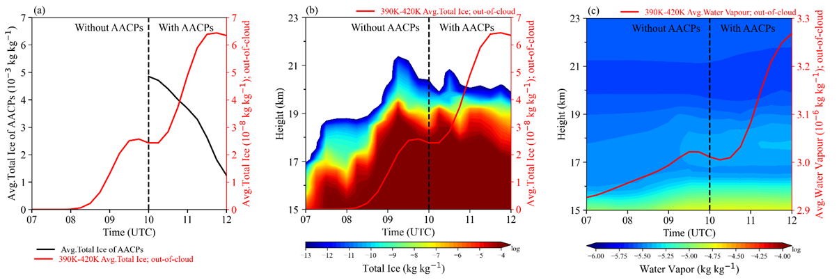 图2 砧状云上卷云羽AACPs导致下平流层冰和水汽增加