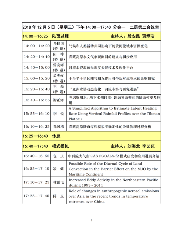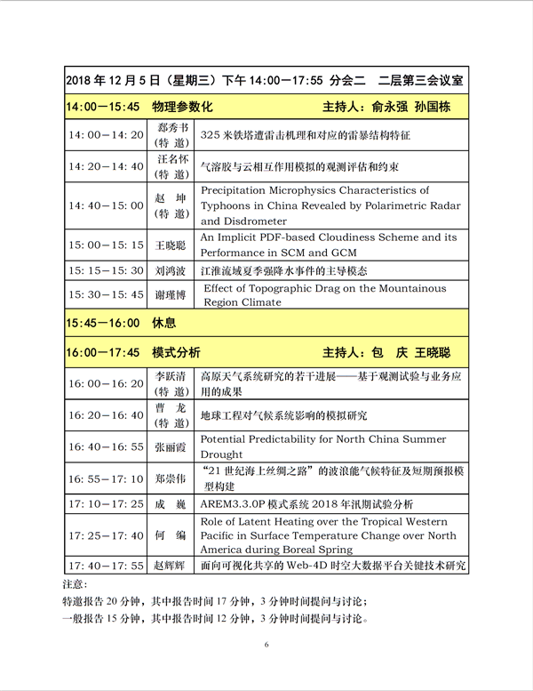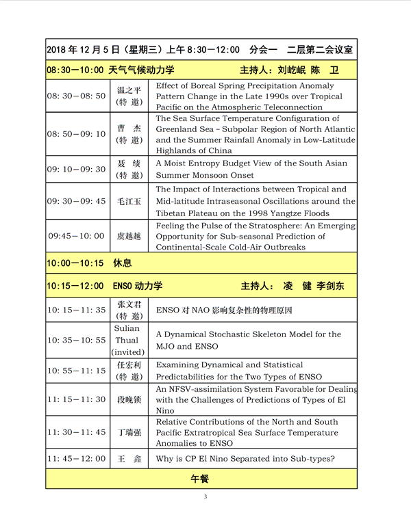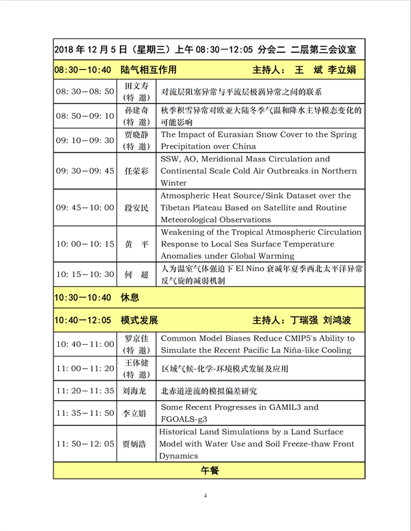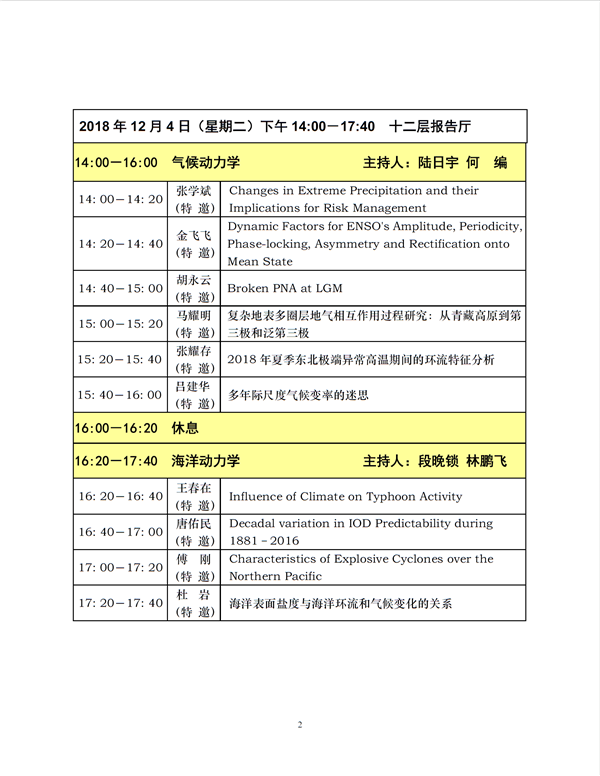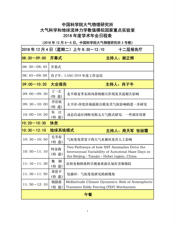 大气所LASG国家重点实验室2018年度学术年会日程表