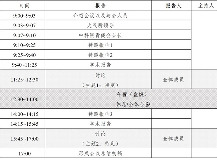 本次研讨会将主要分为三个环节:(1)特邀报告:邀请3位知名专家介绍“碳中和”背景、科学问题、并介绍研究所和国家“碳中和”相关的布局;(2)青年研究人员报告:邀请10~15位青年研究人员就自己熟悉的“碳中和”相关领域做学术报告,包括大气、陆地、海洋、能源等不同学科领域和不同研究所。(3)讨论:保证充足的讨论时间,参会青年人员通过充分讨论,针对“碳中和”的科学内涵、实现路径、知识缺口,形成一份会议报告。
