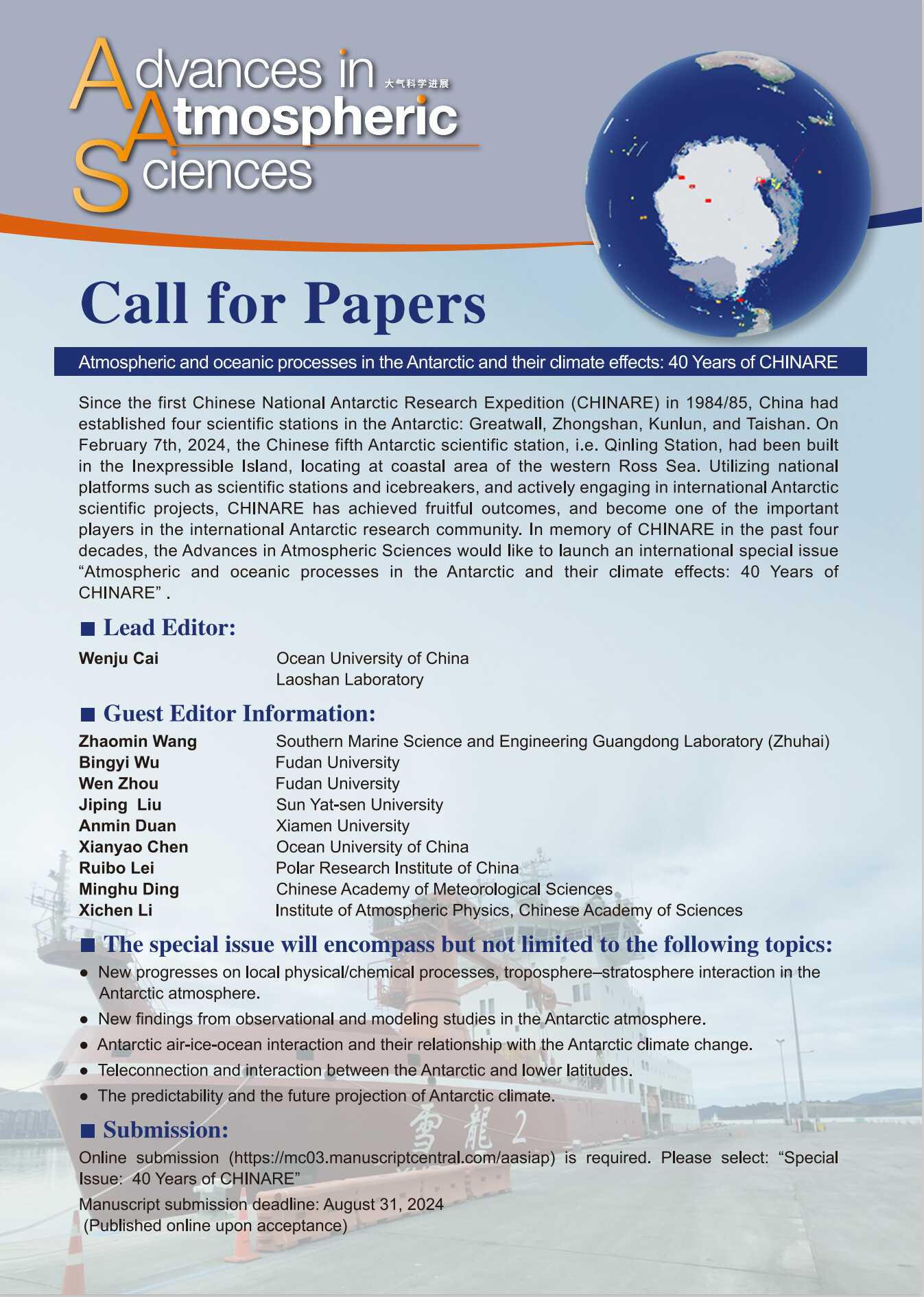 AAS征稿:南极大气和海洋过程及其气候效应——纪念中国南极考察40周年
