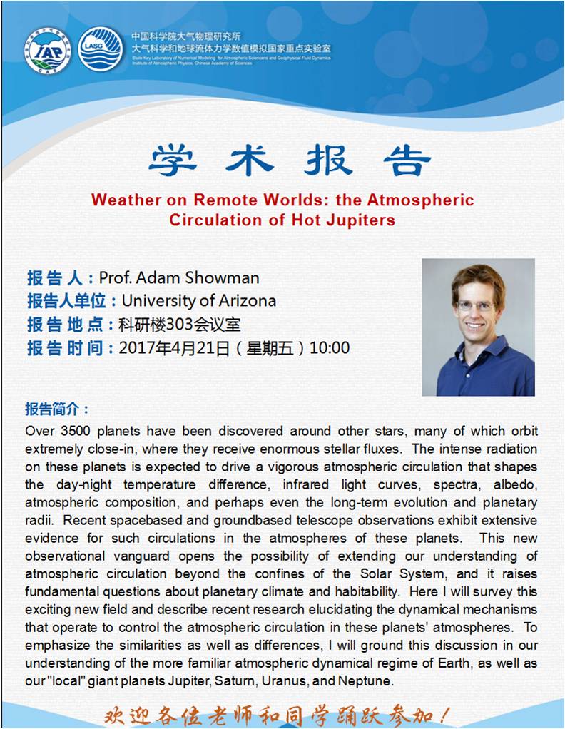 【4.21】Weather on Remote Worlds: the Atmospheric Circulation of Hot Jupiters