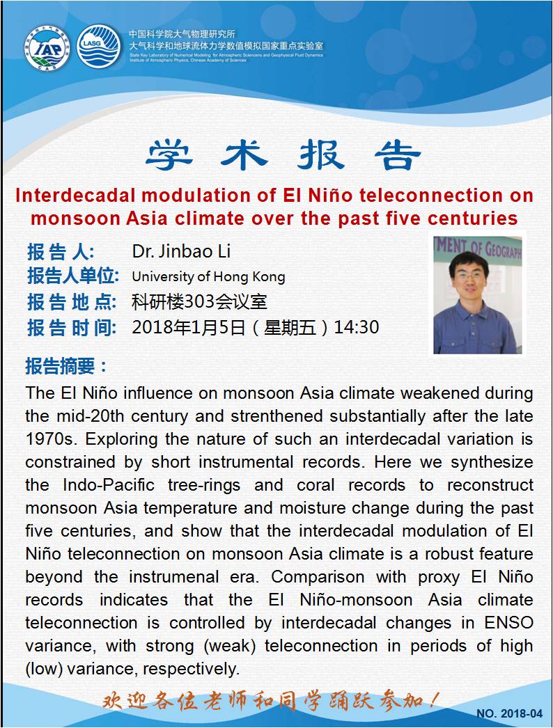 【1.5】Interdecadal modulation of El Ni?o teleconnection on monsoon Asia climate over the past five centuries