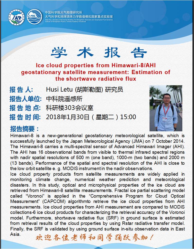 【1.30】Ice cloud properties from Himawari-8/AHI geostationary satellite measurement: Estimation of the shortwave radiative flux