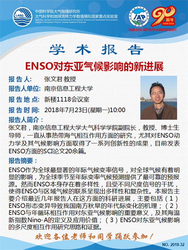 【7.23】学术报告:ENSO对东亚气候影响的新进展