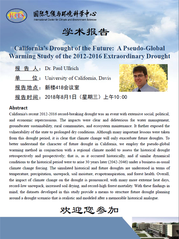 【8.1】学术报告:California’s Drought of the Future: A Pseudo-Global Warming Study of the 2012-2016 Extraordinary Drought