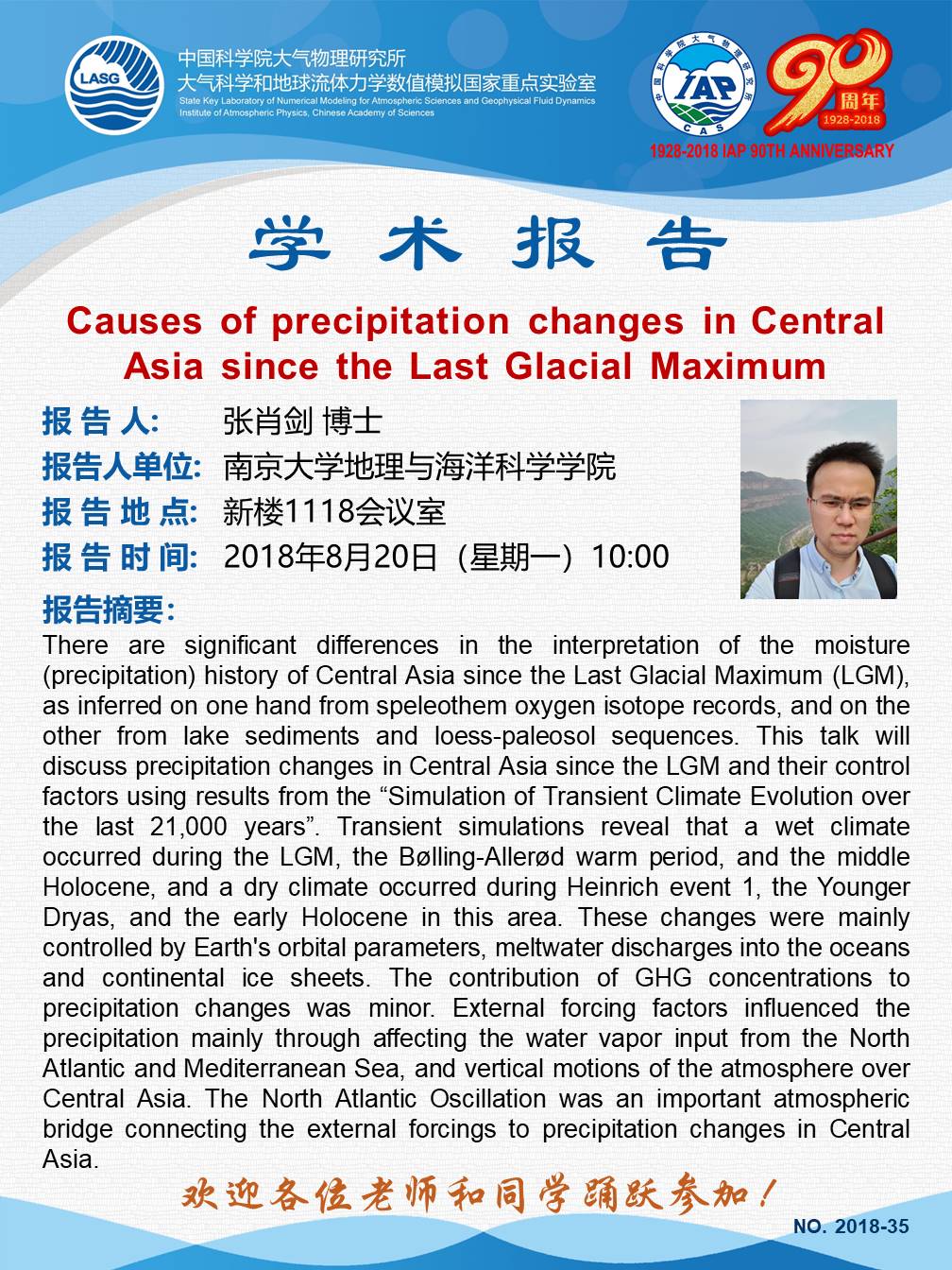【8.20】学术报告:Causes of precipitation changes in Central Asia since the Last Glacial Maximum