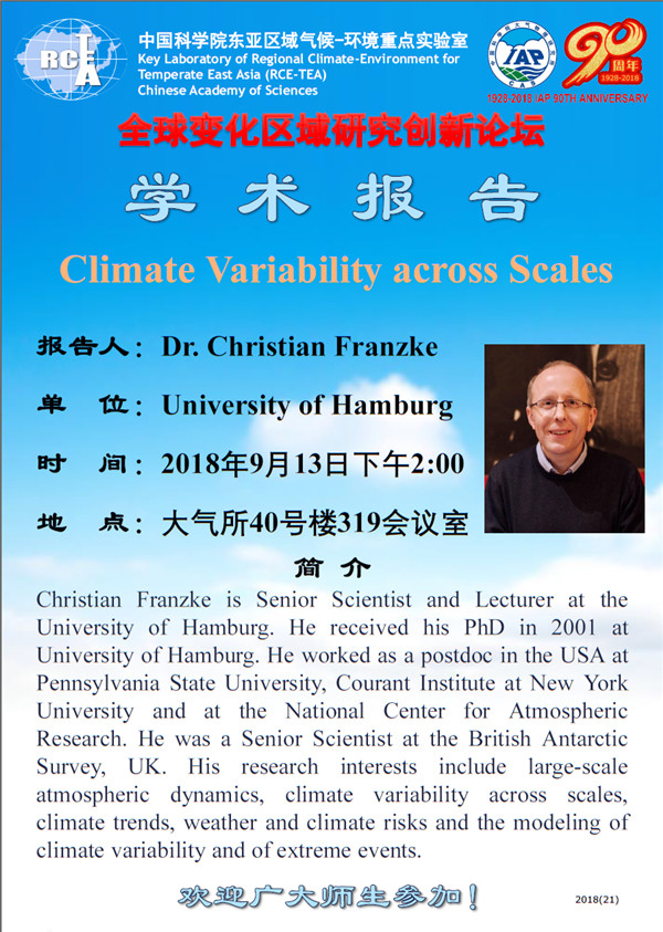 【9.13】学术报告:Climate Variability across Scales
