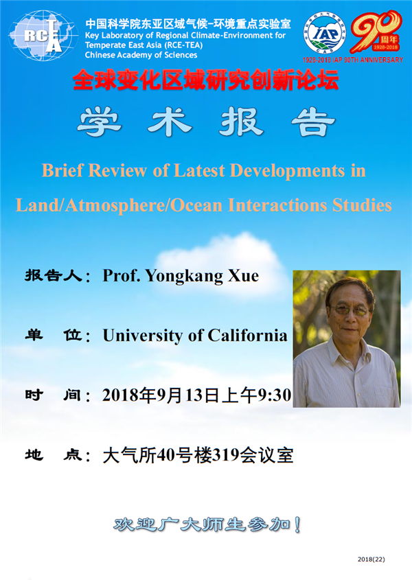 【9.13】学术报告:Brief Review of Latest Developments in Land/Atmosphere/Ocean Interactions Studies