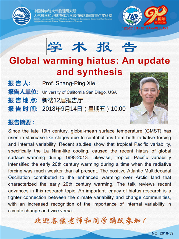【9.14】学术报告:Global warming hiatus: An update and synthesis