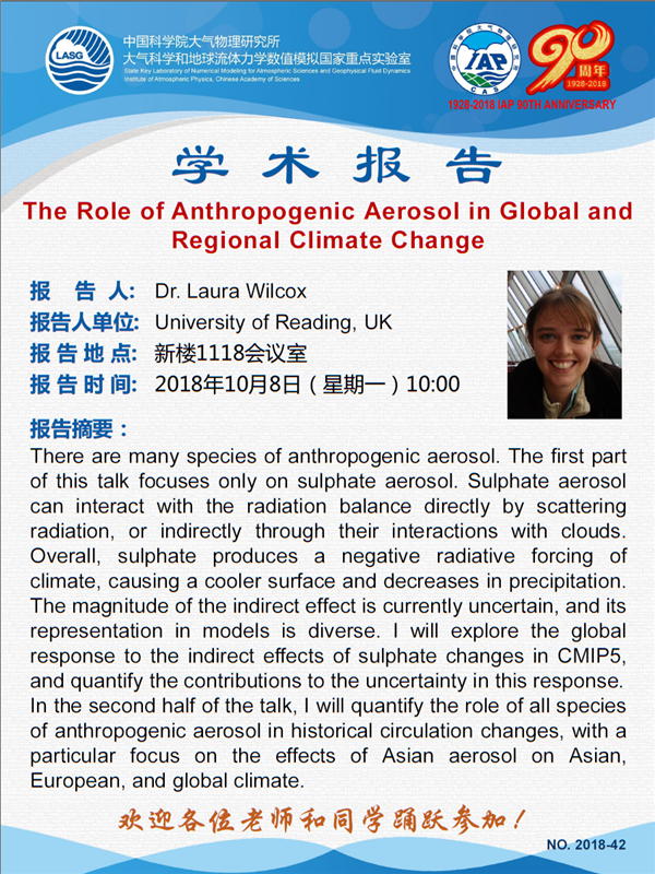 【10.8】学术报告:The Role of Anthropogenic Aerosol in Global and Regional Climate Change