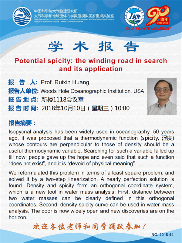 【10.10】学术报告:Potential spicity: the winding road in search and its application