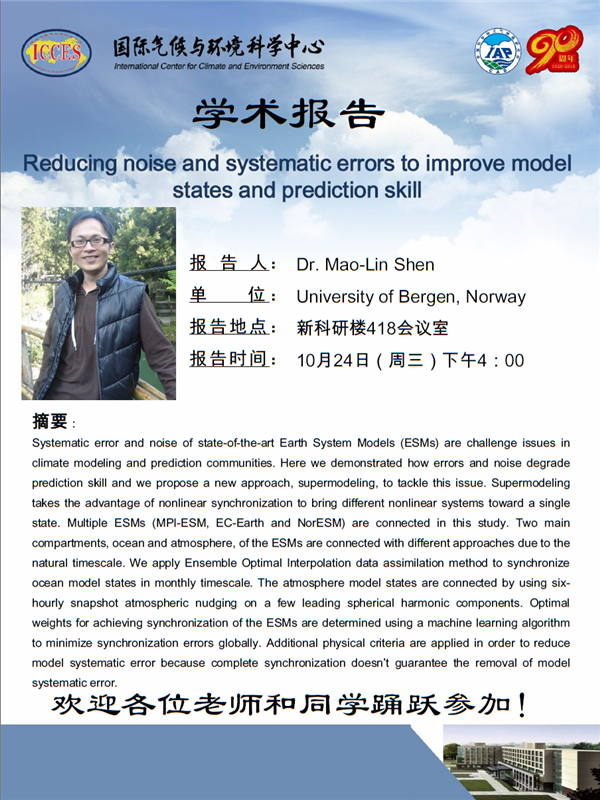 【10.24】学术报告:Reducing noise and systematic errors to improve model states and prediction skill