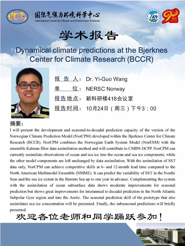 【10.24】学术报告:Dynamical climate predictions at the Bjerknes Center for Climate Research (BCCR)