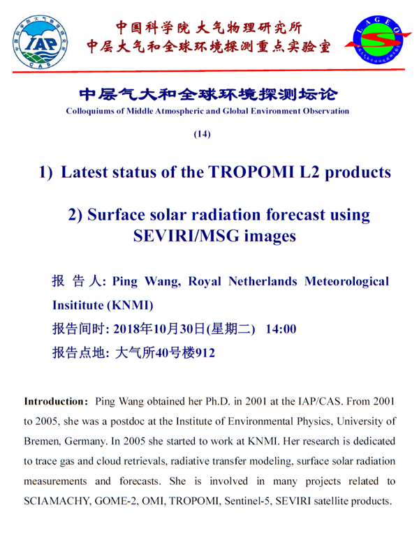 【10.30】学术报告:Latest status of the TROPOMI L2 products