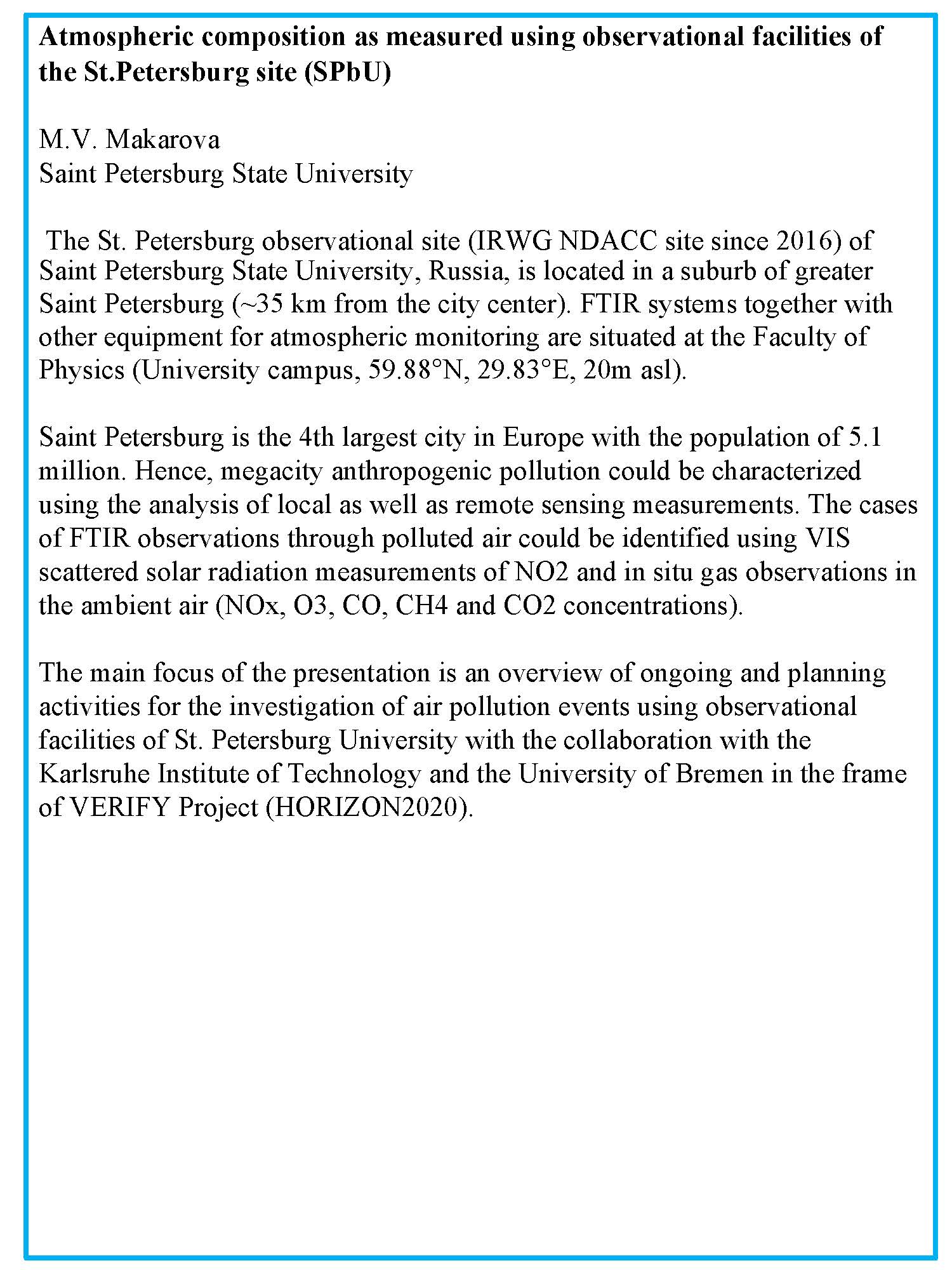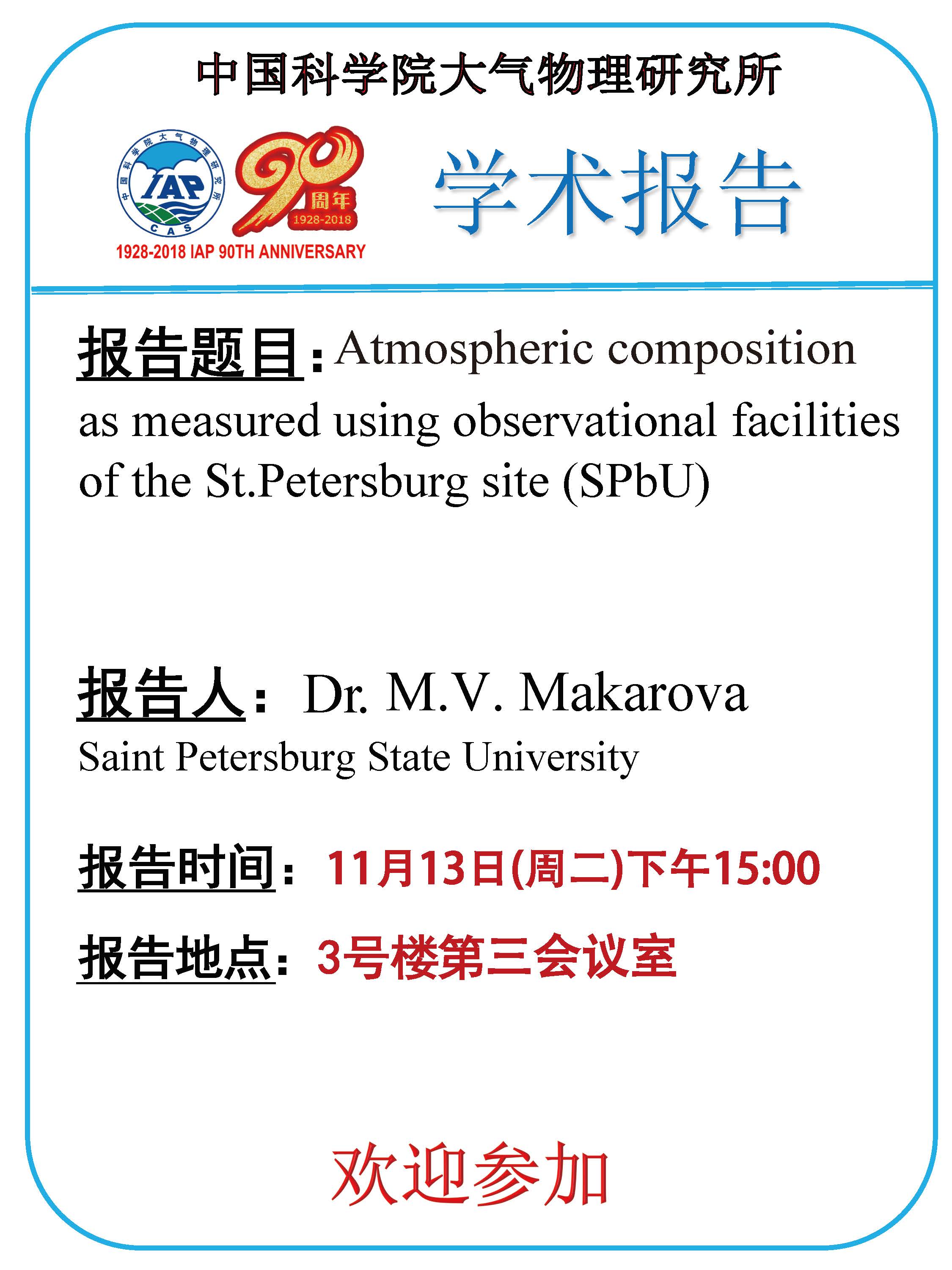 【11.13】学术报告:Atmospheric composition as measured using observational facilities of the St.Petersburg site (SPbU)