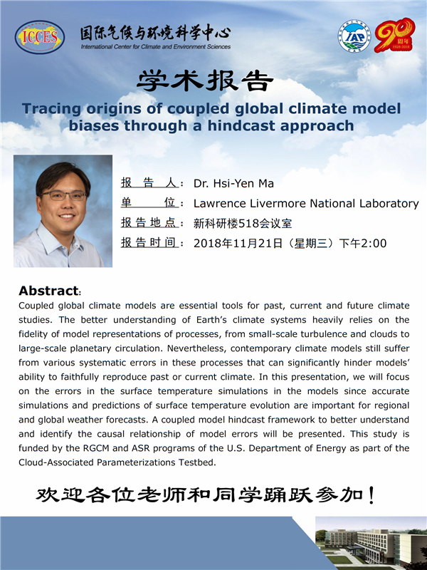 【11.21】学术报告:Tracing origins of coupled global climate model biases through a hindcast approach