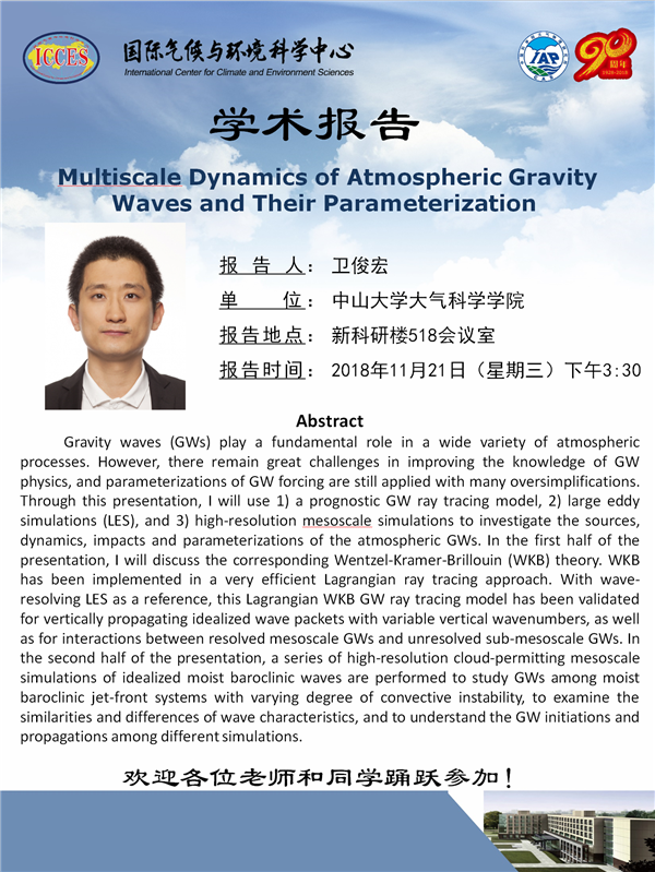 【11.21】学术报告:Multiscale Dynamics of Atmospheric Gravity Waves and Their Parameterization