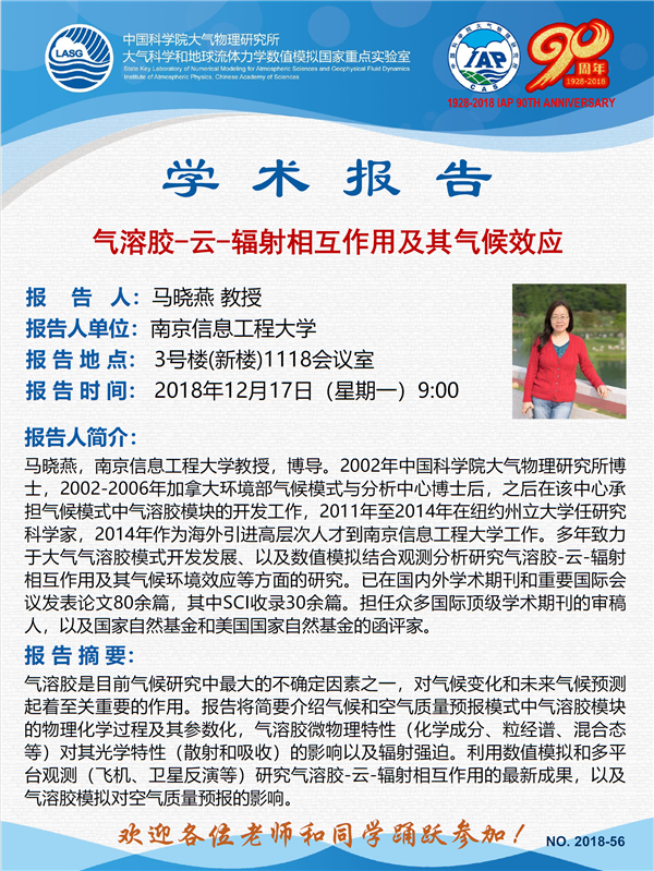 【12.17】学术报告:气溶胶-云-辐射相互作用及其气候效应