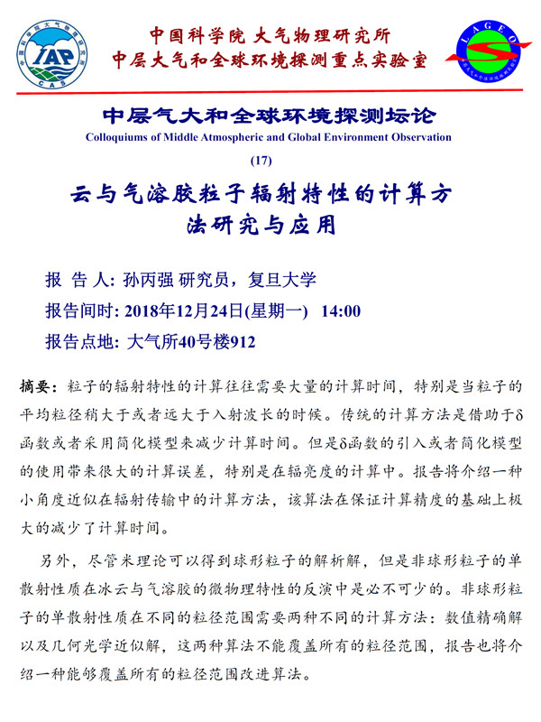 【12.24】学术报告:云与气溶胶粒子辐射特性的计算方法研究与应用