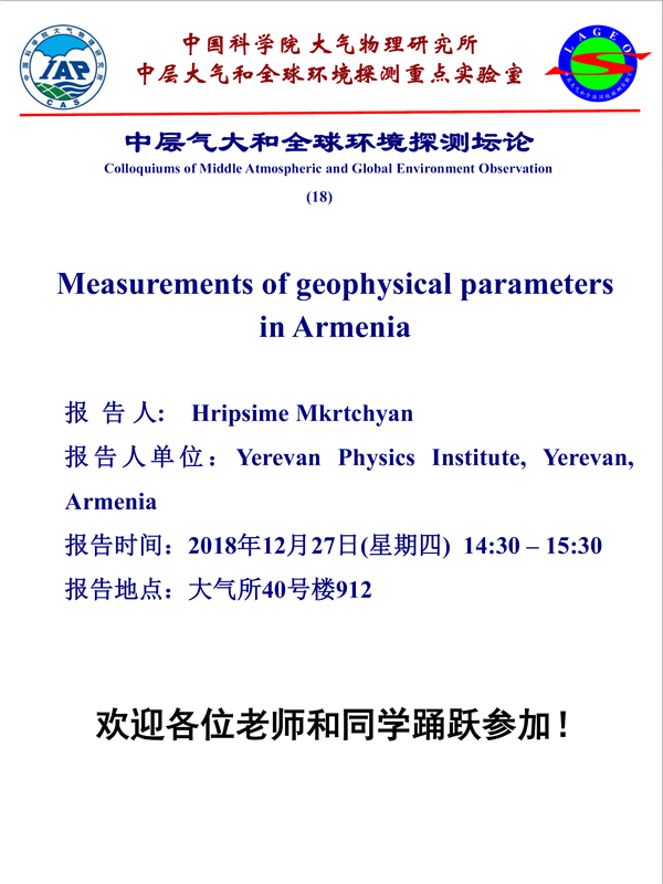 【12.27】学术报告:Measurements of geophysical parameters in Armenia