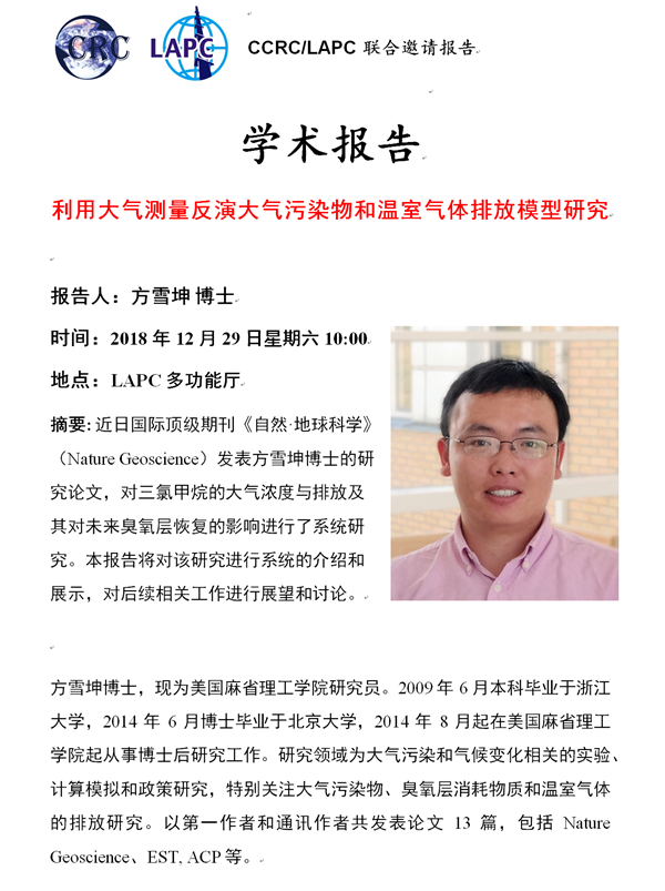 【12.29】学术报告:利用大气测量反演大气污染物和温室气体排放模型研究