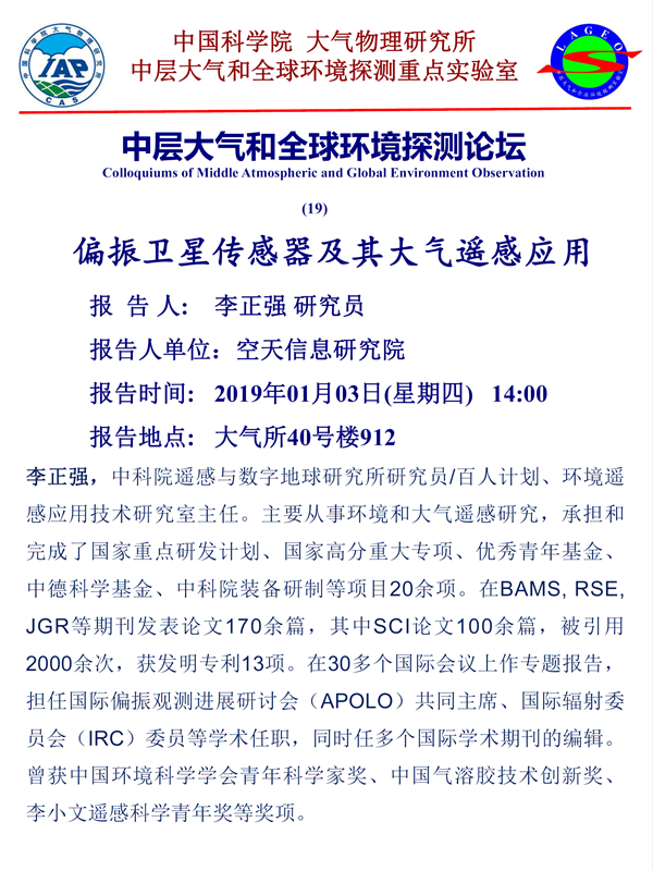 【1.3】学术报告:偏振卫星传感器及其大气遥感应用