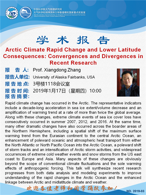 【1.17】学术报告:Arctic Climate Rapid Change and Lower Latitude Consequences: Convergences and Divergences in Recent Research