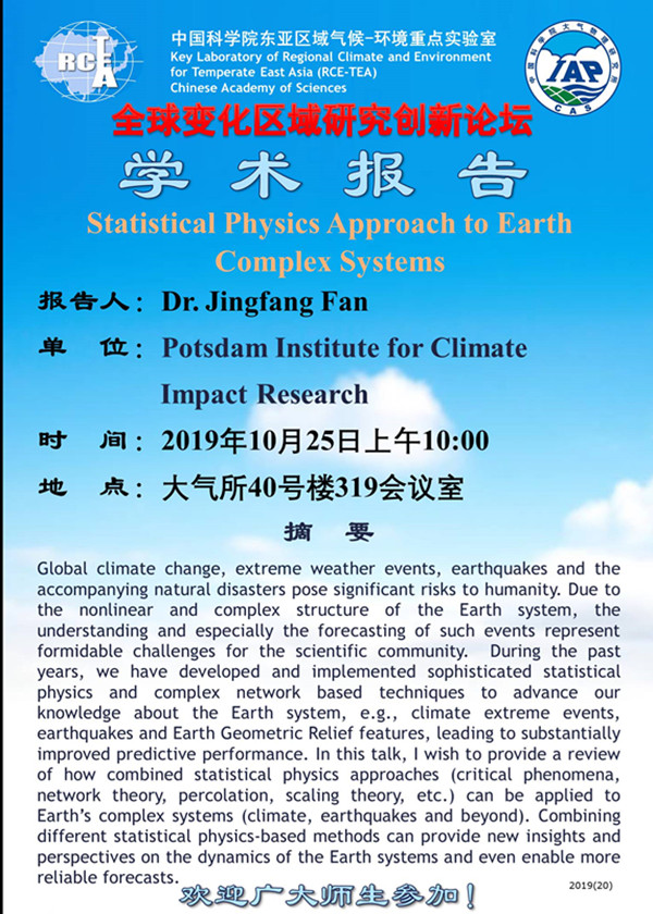 【10.25】Statistical Physics Approach to Earth Complex Systems
