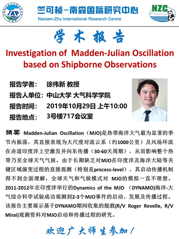 【10.29】Investigation of Madden-Julian Oscillation based on Shipborne Observations