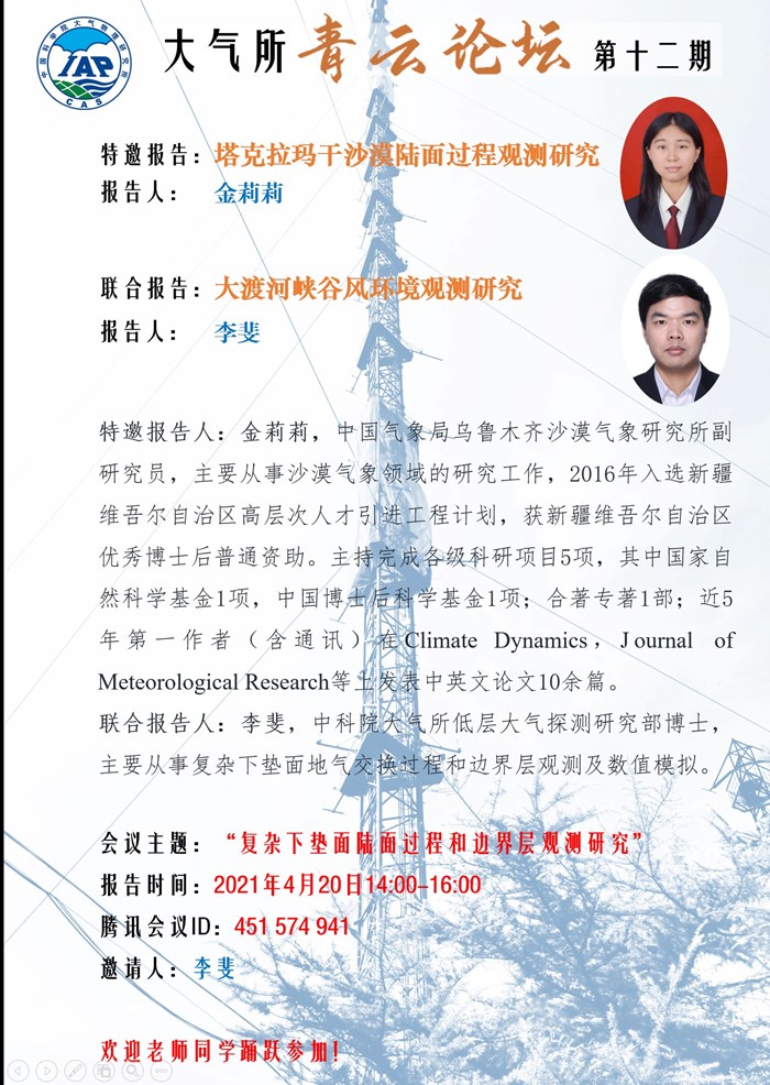 【4.20】青云论坛第十二期--复杂下垫面陆面过程和边界层观测研究
