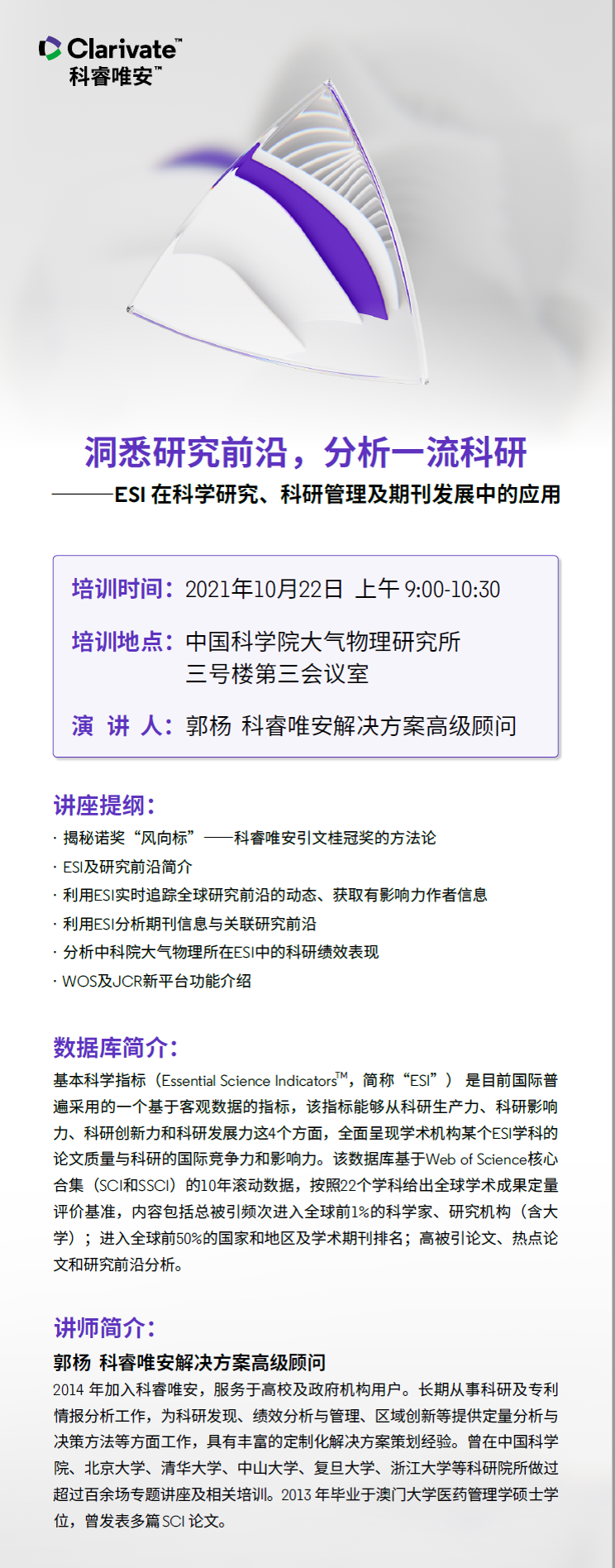 【10.22】洞悉研究前沿,分析一流科研——ESI在科学研究、科研管理及期刊发展中的应用